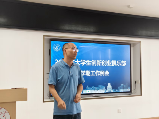 ? ??会议伊始,王雪波对2025年俱乐部工作进行整体安排,从整体层面为俱乐部工作锚定目标与重点并对俱乐部干事提出三点要求:一是树立“敢想敢闯”的创新意识,摒弃“躺平”心态。鼓励干事打破思维局限,主动关注前沿动态,挖掘新需求与新机遇。二是锤炼“落地可行”的实践能力,避免“纸上谈兵”。要求干事以提升能力为核心,积极参与俱乐部工作、双创竞赛,将创意转化为可操作项目。三是坚守“协作共赢”的团队精神,杜绝“单打独斗”。强调俱乐部工作需发挥团队合力,要学会互补互助、发挥特长,凭借团队力量在创新创业道路上稳步前行。